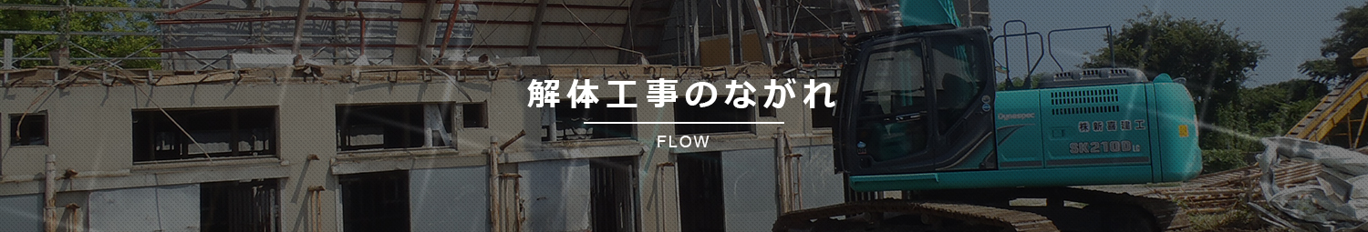解体工事のながれをご説明いたします。お問い合わせ・ご相談をいただき、現地調査からお見積りの提示まで全て無料にて行っております。